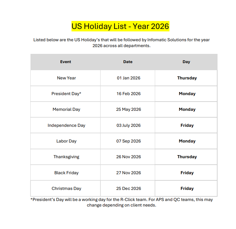 US Holiday 2026